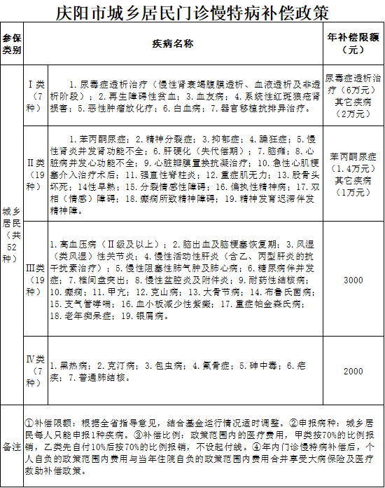 慶陽市城鄉(xiāng)居民門診慢特病補(bǔ)償政策