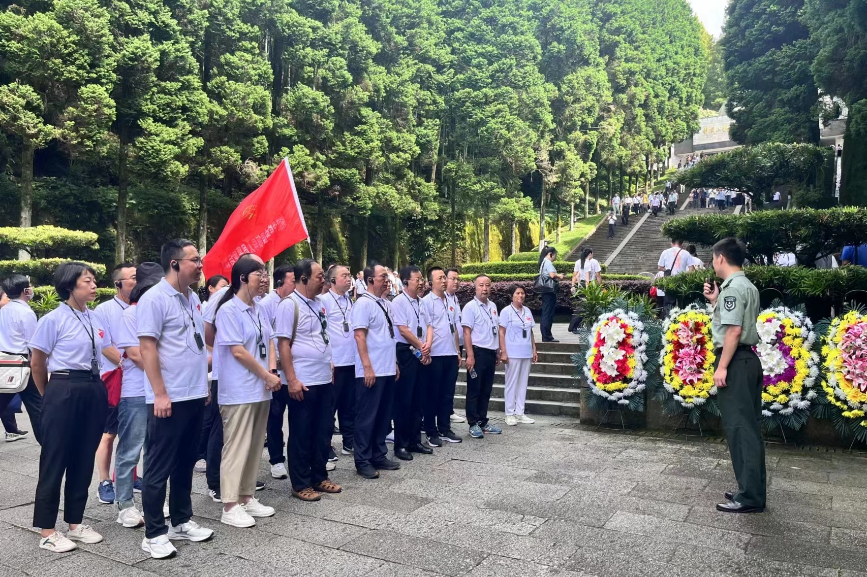 在井岡山革命烈士陵園,我院黨員干部向先烈敬獻(xiàn)花圈。