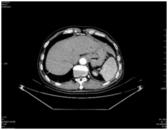 (術(shù)前腹部增強(qiáng)CT顯示:胃底部胃壁增厚強(qiáng)化)