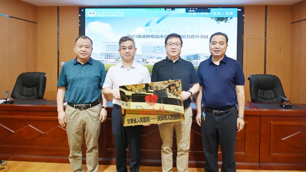 會上,舉行“甘肅省人民醫(yī)院優(yōu)勢學(xué)科——慶陽市人民醫(yī)院血液科醫(yī)聯(lián)體”授牌儀式,標(biāo)志著我院血液科與甘肅省人民醫(yī)院血液科的合作交流邁向新臺階。