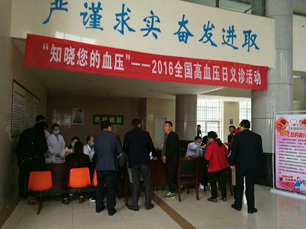 隨著人們生活水平的提高,工作及精神壓力增大成為近年來各行各業(yè)的熱門話題,高血壓患者也逐漸增多并呈低齡化趨勢。為更好地防治高血壓,普及健康知識,提高該類疾病的知曉率、治療率、控制率,10月11日,適逢第19個“全國高血壓日”之際,我院心內(nèi)科組織醫(yī)務人員14名在門診大廳開展以“知曉您的血壓”為主題的義診活動;顒又校t(yī)護人員為廣大群眾測量血壓、心率,贈送藥物,發(fā)送高血壓宣傳資料,咨詢并進行高血壓健康教育。對高血壓基本診斷、預防、治療進行宣教講解。對既往高血壓患者進行強化教育及藥物調(diào)整,通過宣傳義診活動,使更多的群眾了解并重視高血壓,普及相關(guān)知識,從而提高人群高血壓知曉率及服藥率,開展個體化的健康生活方式指導和疾病管理,提高居民預防和控制高血壓的意識和能力。做到高血壓早發(fā)現(xiàn)、早診斷、早治療。
