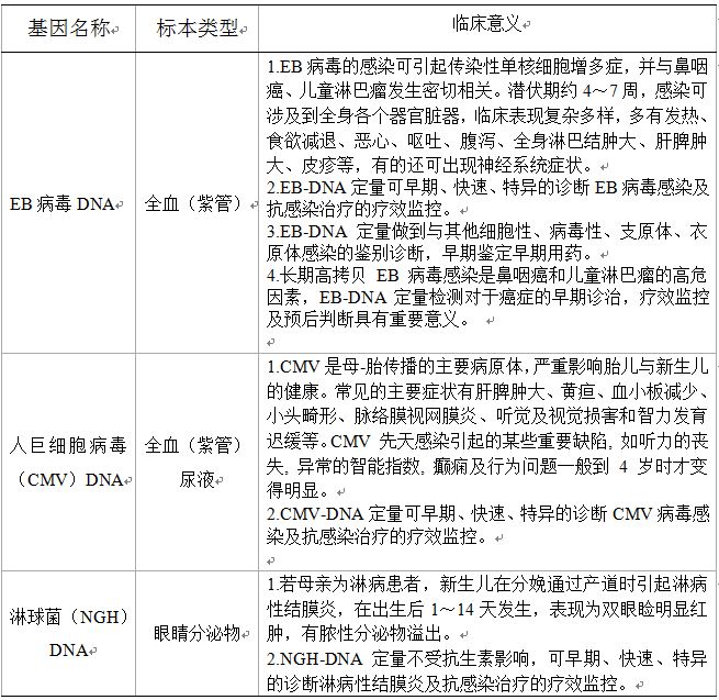三、兒科、新生兒科病毒定量檢測(cè)項(xiàng)目
