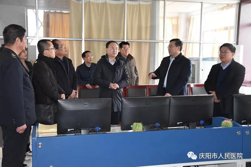2019年1月8日,副市長王勝一行蒞臨慶陽市人民醫(yī)院,就信息化建設(shè)和急救綠色通道建設(shè)工作進(jìn)行調(diào)研。市政府辦公室副主任王建剛、市衛(wèi)計(jì)委副主任李元慶、市醫(yī)改辦主任張偉等一同參加調(diào)研。市人民醫(yī)院院長張志峰、黨委書記田曉芳等陪同。