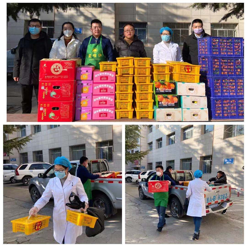 1月29日上午11點(diǎn)30分《慶陽(yáng)市人民醫(yī)院接受愛(ài)心捐贈(zèng)公告》發(fā)出,廣大市民積極轉(zhuǎn)發(fā)擴(kuò)散,極短時(shí)間內(nèi)就得到了社會(huì)各界的響應(yīng)和大力支持,廣大人民群眾用實(shí)際行動(dòng)為醫(yī)護(hù)人員鼓勁加油。僅僅一個(gè)小時(shí)后,就有愛(ài)心人士為醫(yī)院捐贈(zèng)口罩300個(gè);當(dāng)天中午,我市德克士快餐店為急診科醫(yī)護(hù)人員送來(lái)免費(fèi)愛(ài)心午餐,讓全副武裝、堅(jiān)守崗位的醫(yī)護(hù)人員吃上了一口熱飯;下午,我市一水果超市老板王先生為堅(jiān)守崗位的醫(yī)護(hù)人員捐贈(zèng)了一車(chē)水果。一份份愛(ài)心捐贈(zèng)如涓涓暖流,瞬間溫暖了廣大醫(yī)護(hù)人員連續(xù)多日加班加點(diǎn)工作的疲憊身心。王先生靦腆地說(shuō),“我們水果店是全國(guó)3000多家連鎖店其中之一,每家店都向當(dāng)?shù)蒯t(yī)院捐贈(zèng)水果,略盡薄力,助力醫(yī)護(hù)人員共渡難關(guān)。”