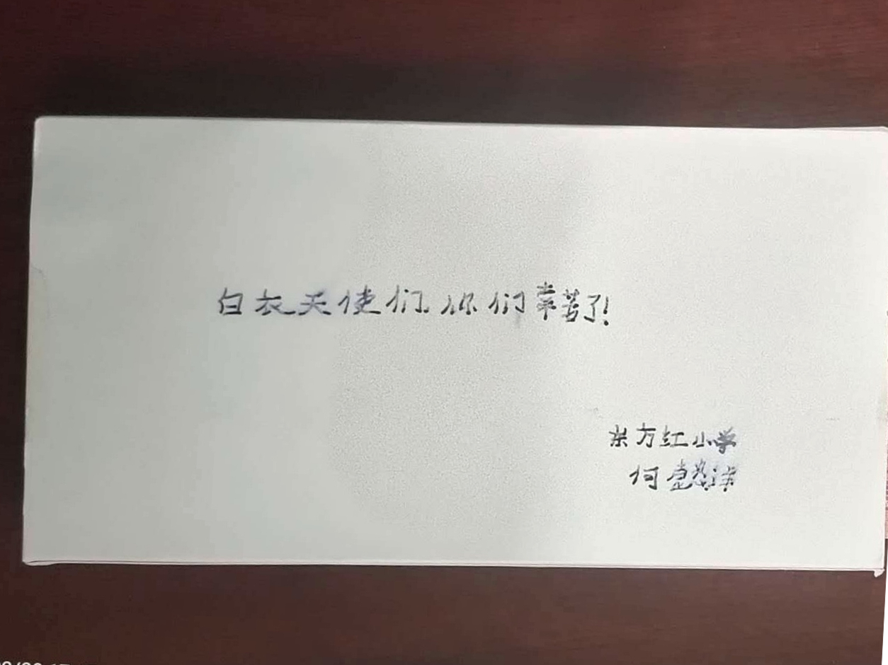 盒子里裝著222元現(xiàn)金,白色紙盒上稚嫩而工整的字體,讓在場(chǎng)的醫(yī)護(hù)人員心都要融化了,一股難以表達(dá)的暖流瞬間充滿寒冷的帳篷,流進(jìn)預(yù)檢分站點(diǎn)每個(gè)醫(yī)護(hù)人員心里。孩子,你有一顆金子般的心。