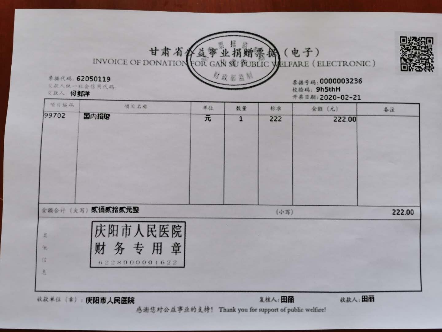 2月20日下午,慶陽市人民醫(yī)院住院二部發(fā)熱預(yù)檢分診點(diǎn)的工作人員正在認(rèn)真排查發(fā)熱患者,突然一個(gè)小女孩跑過來向預(yù)檢分診點(diǎn)帳篷丟進(jìn)來一個(gè)盒子轉(zhuǎn)身就跑,值班護(hù)士一臉疑惑,還沒等反應(yīng)過來,小女孩就跑遠(yuǎn)了。值班人員小心翼翼撿起盒子,只見上面寫著——白衣天使們,你們辛苦了!