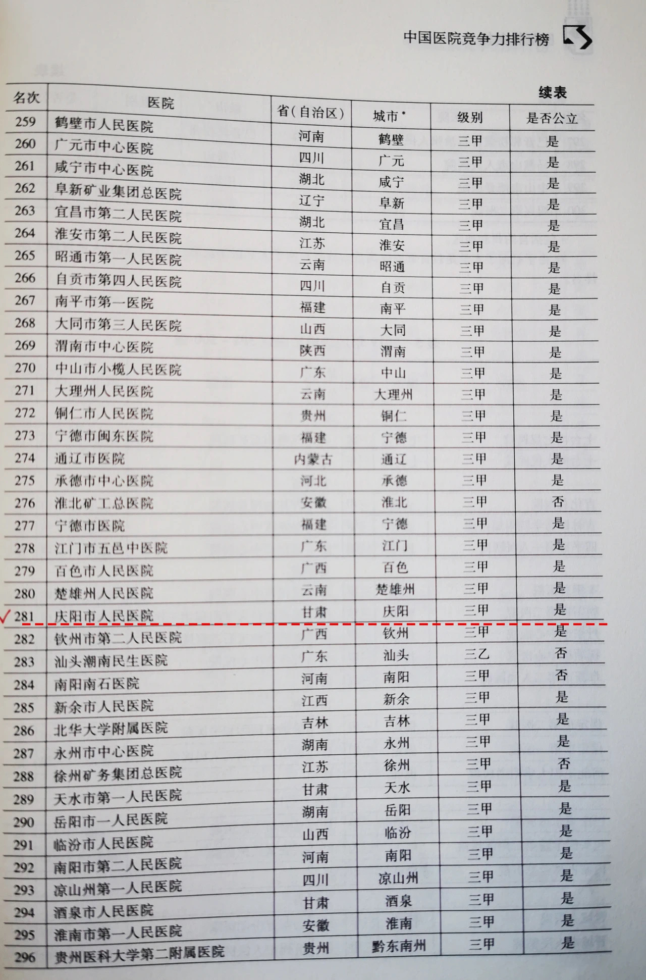 喜訊|中國(guó)醫(yī)院競(jìng)爭(zhēng)力排行榜發(fā)布 慶陽(yáng)市人民醫(yī)院上榜地級(jí)城市醫(yī)院300強(qiáng),位列甘肅省地級(jí)醫(yī)院榜首