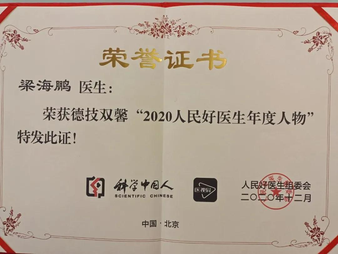 我院梁海鵬主任榮獲德技雙馨“2020人民好醫(yī)生年度人物”