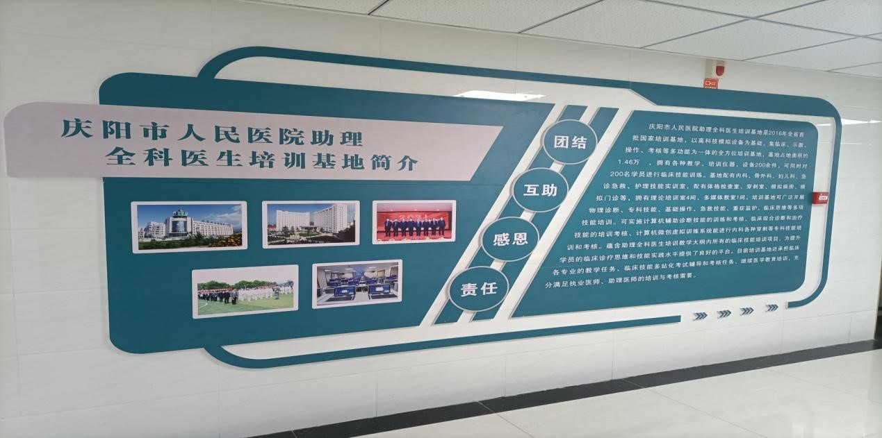 慶陽(yáng)市人民醫(yī)院助理全科醫(yī)生培訓(xùn)基地是2016年全省首批國(guó)家培訓(xùn)基地,經(jīng)過(guò)近幾年的不斷投入建設(shè),已建成集臨床示教、技能操作、綜合考核等多功能培訓(xùn)基地。目前,基地占地面積約1.46萬(wàn)㎡,擁有各種教學(xué)、培訓(xùn)儀器、設(shè)備200余件,基地配有內(nèi)科、骨外科、婦兒科、急診急救、護(hù)理技能實(shí)訓(xùn)室,配有體格檢查室、穿刺室、模擬病房、模擬門診等,擁有理論培訓(xùn)室4間、多媒體教室1間。培訓(xùn)基地可廣泛開展物理診斷、專科技能、基礎(chǔ)操作、急救技能、重癥監(jiān)護(hù)、臨床思維等多項(xiàng)技能培訓(xùn),可同時(shí)對(duì)200名學(xué)員進(jìn)行臨床技能訓(xùn)練,可實(shí)施計(jì)算機(jī)輔助診斷技能的訓(xùn)練和考核、臨床綜合診斷和治療技能的培訓(xùn)考核、計(jì)算機(jī)微創(chuàng)虛擬訓(xùn)練系統(tǒng)能進(jìn)行內(nèi)科各種穿刺等?萍寄芘嘤(xùn)和考核。蘊(yùn)含全科醫(yī)生培訓(xùn)教學(xué)大綱內(nèi)所有的臨床技能培訓(xùn)項(xiàng)目,為提升學(xué)員的臨床診療思維和技能實(shí)踐水平提供了良好的平臺(tái)。