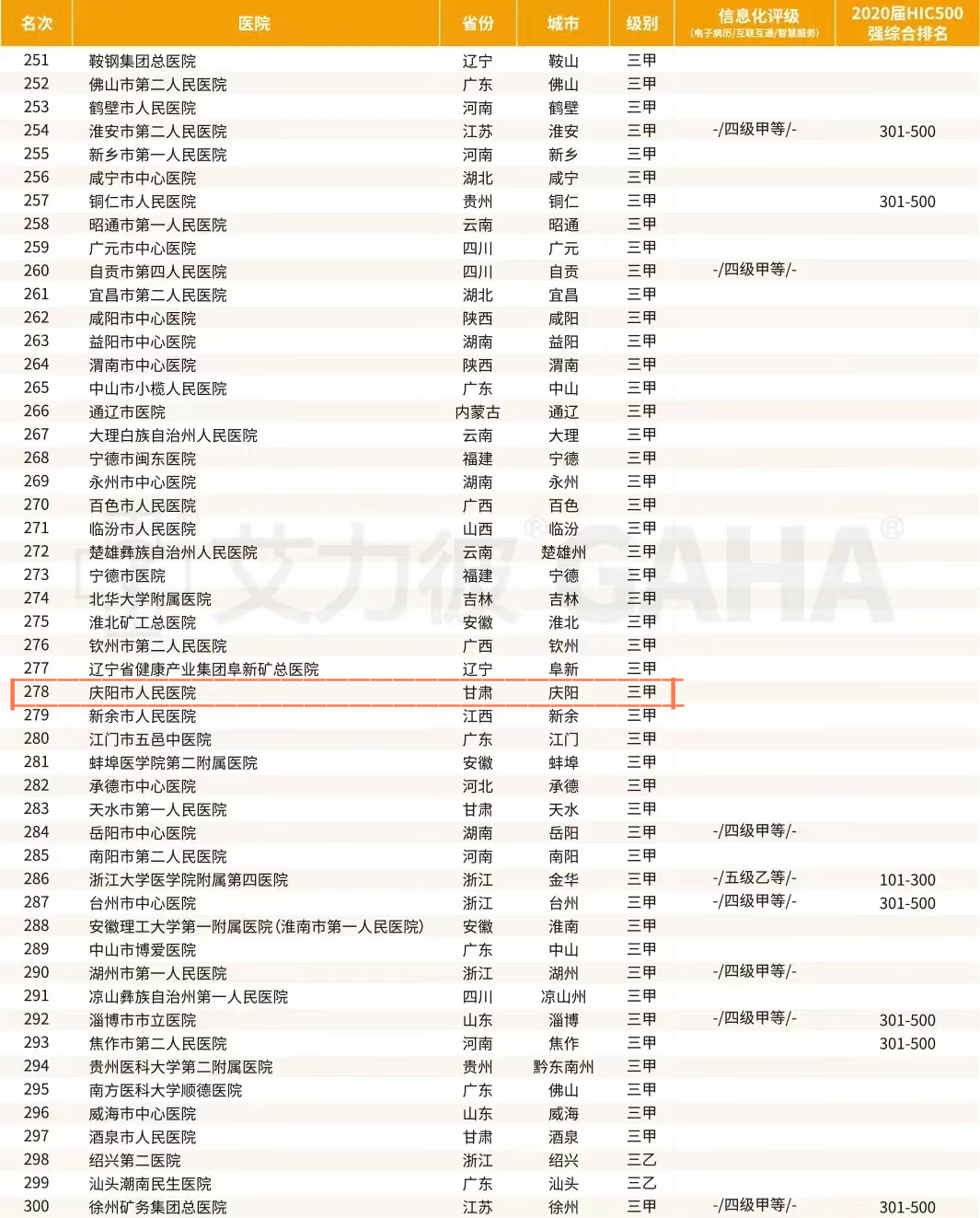慶陽市人民醫(yī)院再度榮登艾力彼“2021屆地市級(jí)醫(yī)院300強(qiáng)”