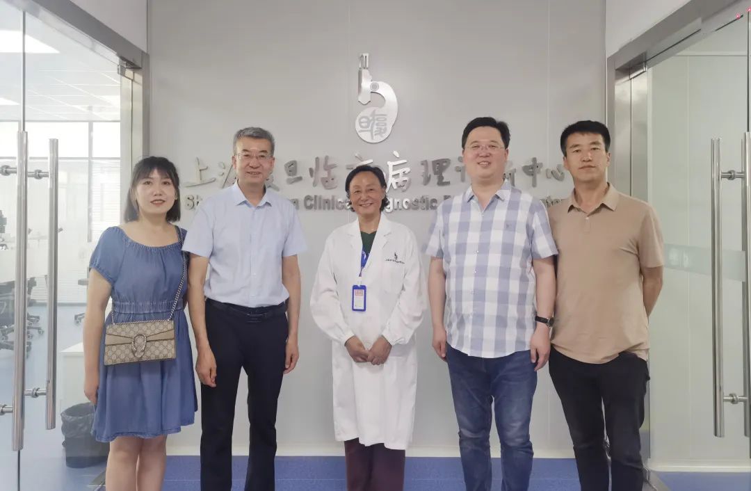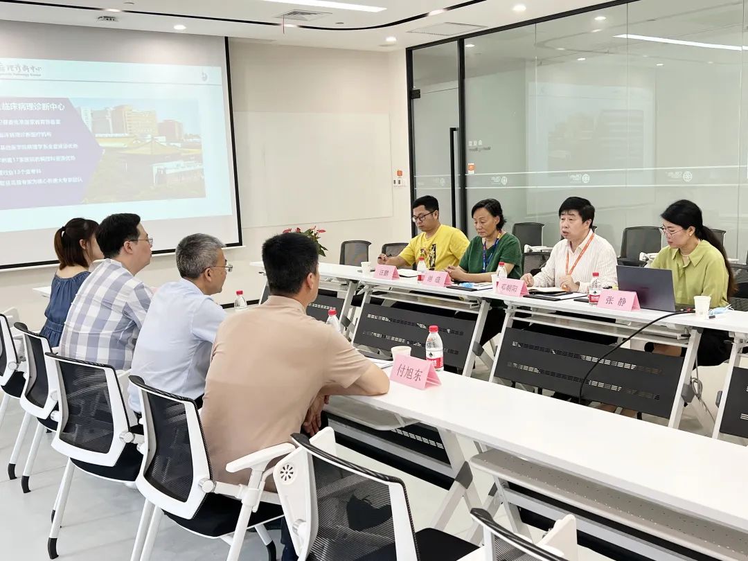 在復(fù)旦病理診斷中心,聽取情況介紹,參觀病理取材室、細胞學室、分子實驗室及診斷室,圍繞遠程病理會診、數(shù)字病理化平臺建設(shè)、科室建設(shè)、質(zhì)控規(guī)范、人才培養(yǎng)、學術(shù)與科研創(chuàng)新、賦能臨床診療等內(nèi)容進行深入交流和座談。