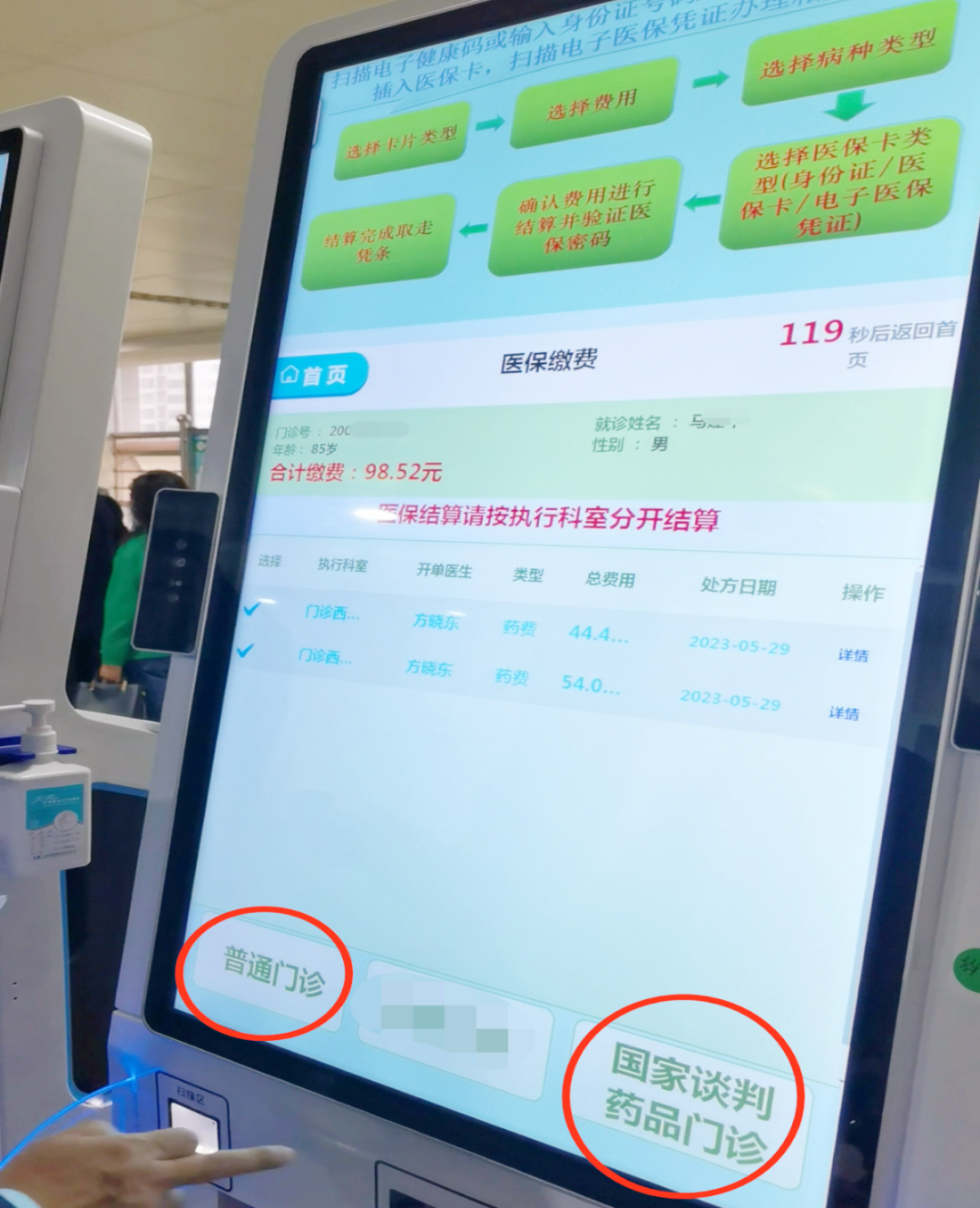 “以前國家談判藥品拿藥要先掛號,再到醫(yī)生處開藥,再到窗口排隊交費,最后還要去藥房取藥,高峰期時,窗口排隊人多,現(xiàn)在自助機可以直接報銷了。按照提示大概需要一兩分鐘就能實現(xiàn)報銷交費了,自助機可以微信、支付寶、銀行卡支付,對于報銷金額和藥品數(shù)量一目了然,明明白白,這種體驗感很好。再也不用為排隊發(fā)愁了,真是太方便了!”市民馬先生在體驗自助機報銷后開心的說。